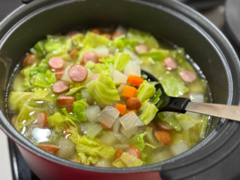 野菜たっぷりのスープを食べて