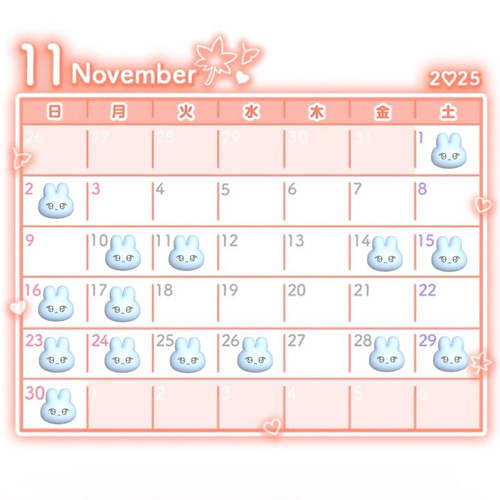 11月予定” 7時間前 @そら こんばんみ🧸🌙 元々究極のインドア女でしたが 最近アクティブな女になりました✊🏻💗 11月の予定は画像にて✍🏻❤︎" 11月も楽しみの予定たくさんあるから 頑張ります^> ·̫ <^⭐️♩ 最近急に寒くなったり🥲🥲 お兄さんも体調気をつけてね🥺🥺 一緒に乗り切りましょうჱ̒^. ̫ .^♡ あっ!明日お休みの予定でしたが 19時まで出勤することにしましたので 良かったら遊んで下さい⸝⸝ʚ̴̶̷̆_ʚ̴̶̷̆⸝⸝✨️✨ POST さん あなたのいいねが女の子に伝わります! 0 マイページにログインすると、 記事にいいねをおこなえます!