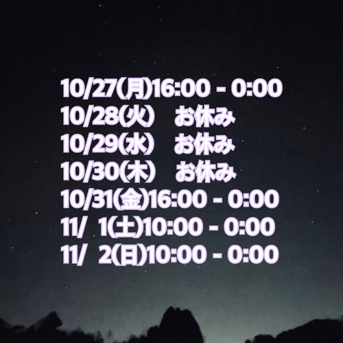 次の出勤は10/31(金)16時からです( * ॑꒳ ॑*)♡