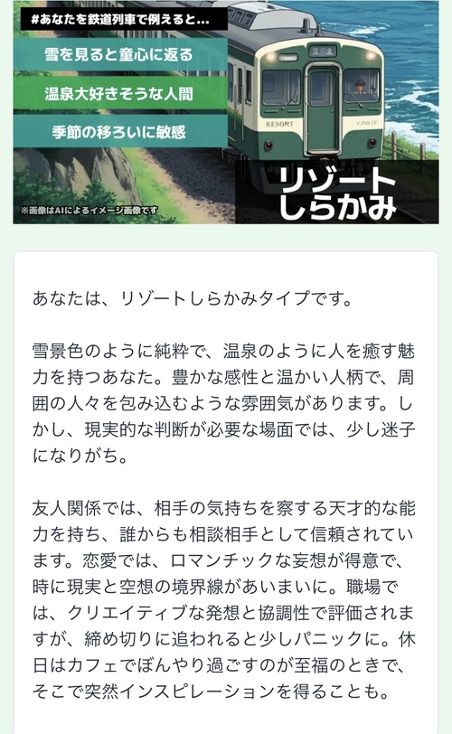 今日の診断テストは手塚を鉄道電車でたとえると、これになりました(*^^*)当たってるぽい笑