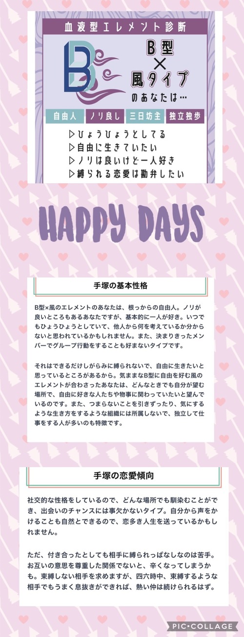 こんにちは(*^^*)今日も午前中〜先程まで、ご新規さん・リピさんお誘いありがとうございました(*^^*)リピさん達や新規さん達に、おもしろいと言ってもらえて嬉しかったので、診断テスト今日も載せますね(*^^*)B型 風のエレメントです(*^^*)双子座なので(*^^*)当たってますね(*^^*)(笑)ただ恋多き女というより、若い頃は、恋に恋してた感じです(*^^*)(笑)あと、わたし一途なので浮気した事は1度もないし、恋人や夫になった人には尽くすし、優しくすると思います(*^^*)自由人で束縛されるのは苦手だけど、浮気はしない^-^そこを理解してくれる人がいたら(*^^*)このお仕事卒業するまでは、ひとりでいます今、雨と雷が凄く、大雨洪水雷注意報が出てるので、雨や雷が落ち着いてからお時間合えば呼んでもらえたら嬉しいです(*^^*)手塚