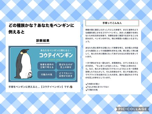 こんにちは(*^^*)手塚さんの日記の診断テストがおもしろいと、リピさんやご新規さんから言われて嬉しかったからまた載せます(*^^*)手塚はどのペンギンのタイプかを診断したら、コウテイペンギンになりました(*^^*)よく、地に足がついてないと言われますし、妄想大好きで、喜ばれたり、サプライズ仕掛けるのが大好きも当たってます(*^^*)(笑)コウテイペンギンって、おっとりしていて、バランスをとるために左右に身体を揺らしながら歩くそうです(*^^*)(笑)仕草がペンギンみたいとか、ペンギンみたいな歩き方と指摘されるんですが(*^^*)(笑)ペンギンて、なんかかわいくて癒されるから好きなので、悪い気はしないですね(笑)今日は、夜からラストリピさんから事前予約入ってますので、今から夕方までなら空いてますので、お時間合えば早めに手塚を呼んでもらえたら嬉しいです(*^^*)週末もみなさんに笑顔で会える事を楽しみにしてますね(*^^*)手塚