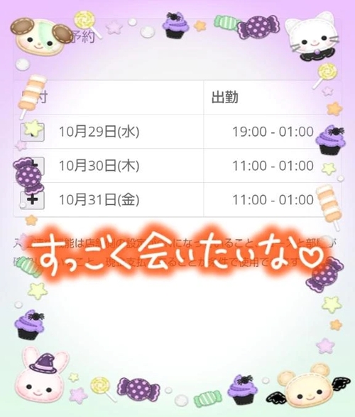 もう少し 2日前 @なつみ こんばんは🌛 夜になってまったりタイム中みなさんはいかがお過ごしですか??今月の出勤が近づいて来ました( *´艸`)出勤、楽しみです☺️ 3日間だけど、皆さんにお会い出来るのを楽しみにしていますꉂ🤗いっぱい楽しみましょうね( *´艸`) POST さん あなたのいいねが女の子に伝わります! 0 マイページにログインすると、 記事にいいねをおこなえます!
