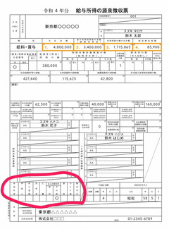 こちらの見本の源泉徴収票の赤丸の部分の控除される箇所に○が付いてくるはずが、今回ミヅキの源泉徴収票には何も付いていなかった⤵️⤵️⤵️