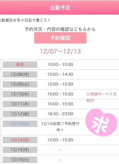 来週の出勤予定が確定したので