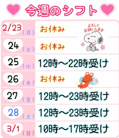 今週のシフトは…