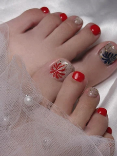 footネイルも彼岸花なのよ。