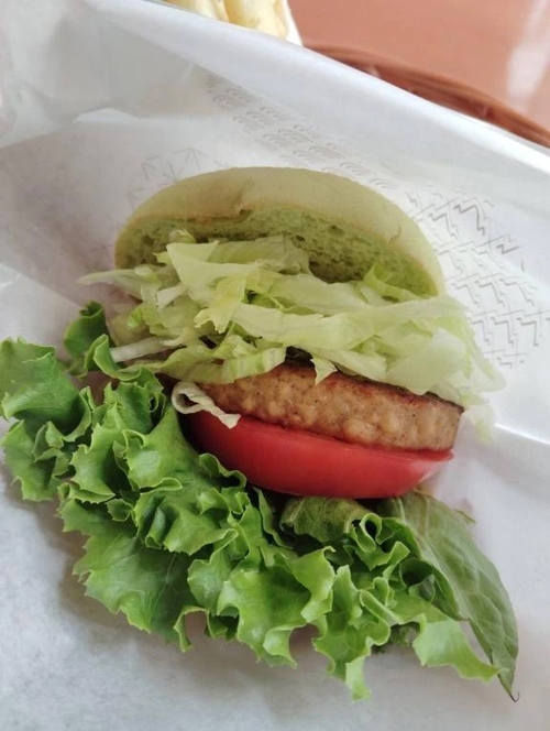 モスのグリーンバーガーを頂いていますが、想像以上に緑…💚