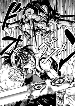 リトル・フィートのスタンド能力によりどんどん体を小さくされてしまうナランチャだったが、二酸化炭素を察知して銃撃攻撃を加える自身のスタンド、エアロ・スミス↓