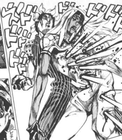 更にジョルノの無駄無駄ラッシュによってとどめを刺され、死亡
