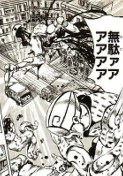 怒ったジョルノが繰り出した無駄無駄のラッシュを長い間叩き込まれ、ゴミ収集車に投入される