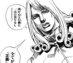 倒しても倒しても時を戻して無効化するリンゴォの前に敗北寸前まで追い込まれるが、ジョニィはリンゴォと正面から対峙し、リンゴォが時を戻す前に倒すことに成功