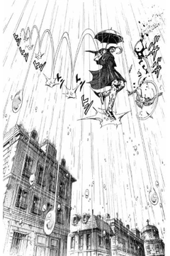 ルーシーはリンゴォから得た情報を元にディエゴよりも早く遺体の脊椎を得る事に成功するが、雨を固定化させる能力を持つスタンド、キャッチ・ザ・レインボー↓