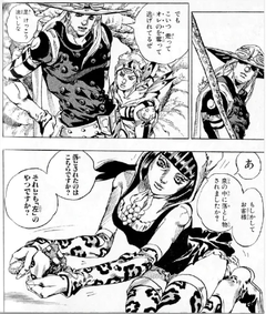 ジョニィはボディーガードに多額の報酬を与えて、なんとか切り抜けるが、生き残った殺し屋の1人に、ジャイロの命を奪うと脅され、遺体を全て渡してしまうのだった