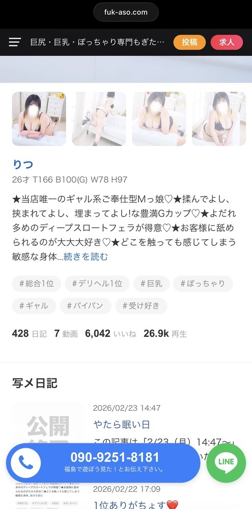 26歳T:166B:100(G)W:78H:97