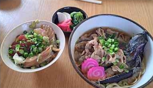 今日はナスのってる蕎麦