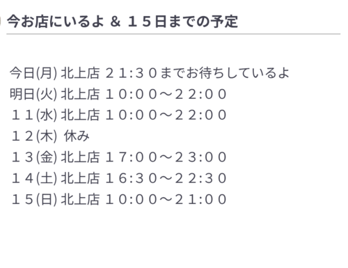 7日、今お店にいるよ