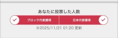みなさまの投票のおかげでブロック代表の
