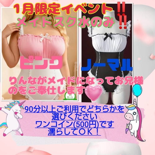 1 月限定イベント ‼️ 1月13日 18:00 @りんな 1月限定イベントやります(๑•̀ㅂ•́)و✧遅くなっちゃったけど💦題して[メイドスク水]限定イベント❣️りんなが持ってるメイドスク水、ピンクとノーマルがあるので1月限定になりますがやります(*•̀ㅂ•́)و✧利用条件は変わらないです①90分以上ご利用✨②ピンクかノーマルどちらか✨③ワンコイン(500円)✨④スク水なので濡らしてOK‼️りんながメイドになってお兄様の🍌をご奉仕します❣️メイド姿になって授乳プレイもできちゃう💕あんなことやこんなことができちゃう❣️ぜひご利用ください💕エッチなことたくさんメイドになってしたいな💕※わからないこと、聞きたいことなどありましたら何なりと😊 POST さん あなたのいいねが女の子に伝わります! 0 マイページにログインすると、 記事にいいねをおこなえます!