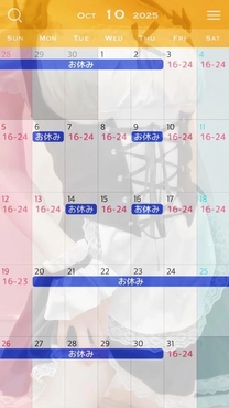 10/04(土) | 10/05(日) | 10/06(月) | 10/07(火) | 10/08(水) | 10/09(木) | 10/10(金) |