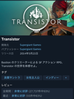 今日は昨日に引き続き、SF戦略アクションRPG「Transistor」を紹介します❤️🎙️🏍️