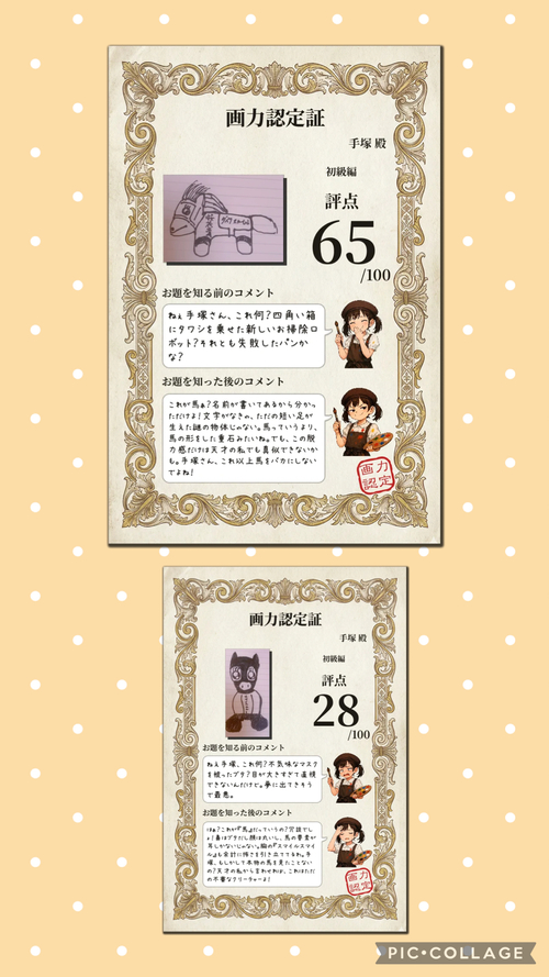 画力診断というものがあり、お馬さんがお題なので2つ提出したら酷評されました(T^T)(笑)