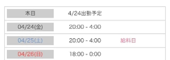 明日から日曜日まで出勤します