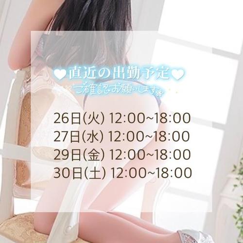 今週の❁¨̮ 8月25日 15:54 @しおん 今週の出勤予定です(ˊᗜˋ)⚐゙お時間合えば是非(❁ᴗ͈ˬᴗ͈)”ラブコール待ってます📞🩵 POST さん あなたのいいねが女の子に伝わります! 0 マイページにログインすると、 記事にいいねをおこなえます!
