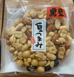 黒豆に、ピーナッツ、ピリカラあられをみずあめでコーティングしたおこしで、