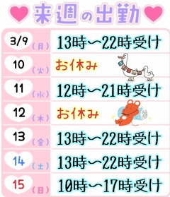 🌼来週のシフト🌼