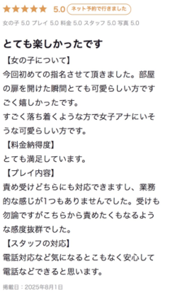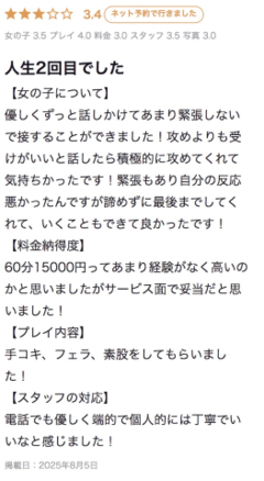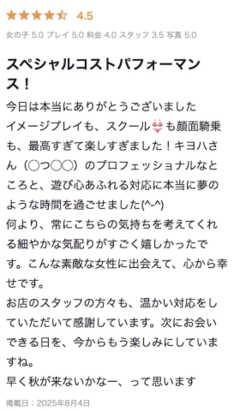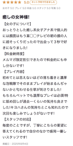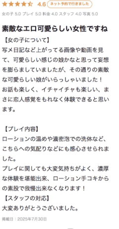 前回、夏に出勤した時に頂いた口コミのご紹介です♡