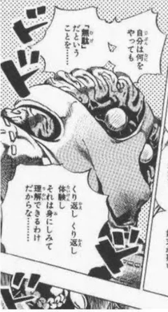 プッチを追う徐倫たちに地面にある過去の記憶を蘇らせ、強制的にその記憶に巻き込む能力を持つスタンド、アンダー・グラウンド↓