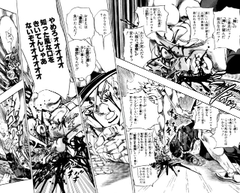 殺そうと一撃を加えるが、エンポリオはその一撃を利用して徐倫から受け取ったウェザーのディスクを自らの体内に入れ込む
