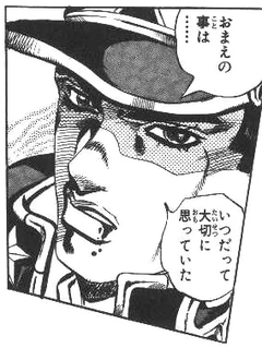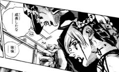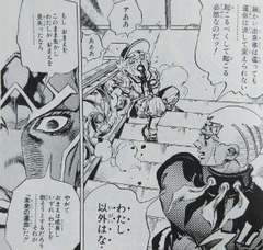 エンポリオはその女性の肩にある星型のアザを見つけ、女性が徐倫の生まれ変わりであることを確信し、涙を浮かべる