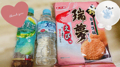 大好きなエビ🦐のお煎餅やお茶やお水🩵