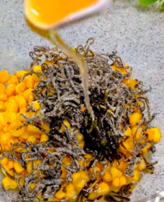 コーン缶一缶に塩昆布ひとつまみとゴマ油