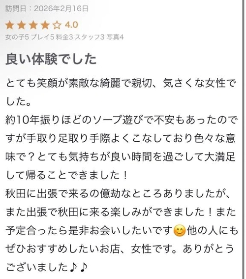 お礼写メ日記 4月5日 15:46 @てぃな 口コミありがとう🌈 お礼遅くなってごめんね🙇♀️10年ぶりのお風呂屋さんで緊張もあったと思うけど最後まで楽しんでもらえてよかったぁ🫶✨これからの出張の楽しみができた!ってとっても嬉しいな💖 またタイミング合えばてぃなと遊んでね!!てぃな👑✨ POST さん あなたのいいねが女の子に伝わります! 0 マイページにログインすると、 記事にいいねをおこなえます!