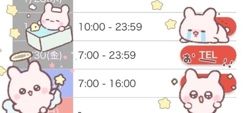 お願いт · т 1月9日 21:46 @うさ ♡うさです🐰🤍今日遊びにきてくれたおにいさんたちお誘いありがとうございます21:50〜🈳 ありますのでお願いします♡そして明日から3連休になるので女の子の出勤が多くなります(T_T)タイミング悪くお部屋がご用意できない!ということもあるかもなのでできるだけ事前にネット予約、電話予約お願いします🙂↕️♡うささんはいつでも空いてますよ~🐰この日しか遊べなかったのに😭と後悔してほしくないのでぜひお願いします♡ POST さん あなたのいいねが女の子に伝わります! 0 マイページにログインすると、 記事にいいねをおこなえます!