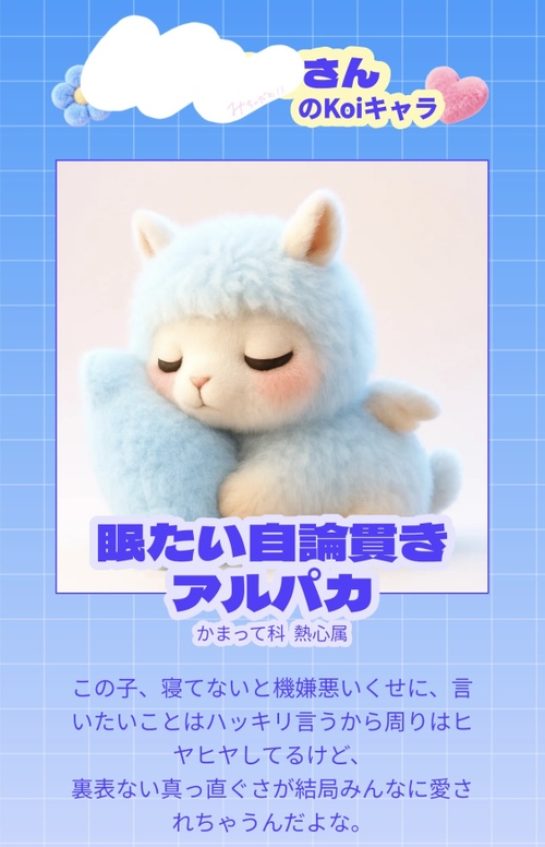 『眠たい自論貫きアルパカ』さん