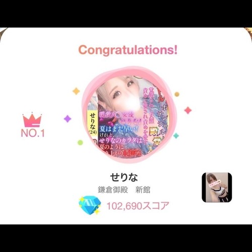 応援ありがとうございました! 3月31日 08:33 @せりな 有難いことに無事に1位になることが できました!!!! 日々応援してくれたお兄さん! ありがとうございました❤️ 本当に嬉しいです☺️ そして次は4月1日からのイベント 参加予定なのでよかったらぜひ 応援の方、よろしくお願いします! POST さん あなたのいいねが女の子に伝わります! 0 マイページにログインすると、 記事にいいねをおこなえます!