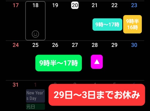 変更あるかもしれませんが、残り少ない今年の出勤