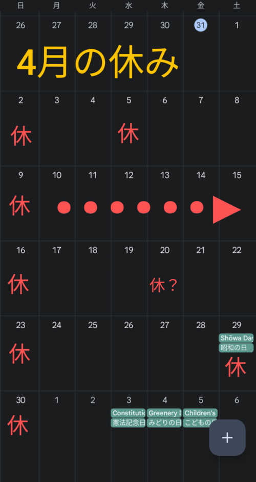4月の休み