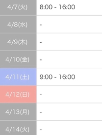 今日の出勤出勤中10:00〜17:00