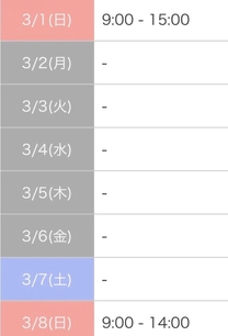 今日の出勤14:30〜OK!10:00〜17:00